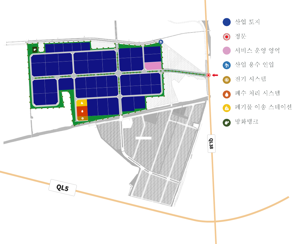 - 국도 38호선 및 국도 05호선과 인접한 산업단지입니다.